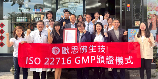 歐思佛生技邱惠敏董事長表示:「本次通過ISO 22716 GMP驗證,是歐思佛在實踐國際化品質戰略上的關鍵一步。我們全體同仁共同努力,未來將持續秉持『嚴謹、專業、創新』的精神,以國際級GMP規範來要求每一個生產細節,不僅持續為國內消費者提供更安心的產品,也更有信心將MIT的優質化妝品推向國際舞台。」
